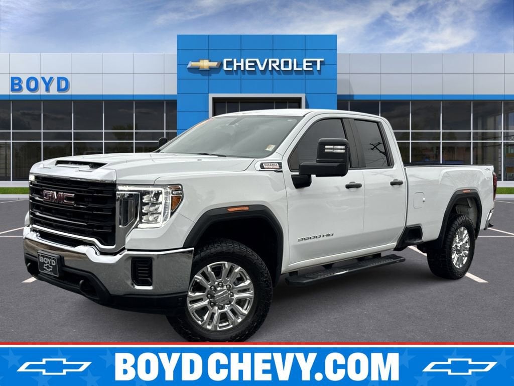 Boyd Chevrolet is proud to offer this Summit White, 2022 Sierra 3500HD Pro featuring: Convenience Package (Deep-Tinted Glass, Electric Rear-Window Defogger, EZ Lift Power Lock & Release Tailgate, LED Cargo Area Lighting, Outside Power-Adjustable Black Mirrors, Remote Keyless Entry, and Steering Wheel-Mounted Cruise Control), Preferred Equipment Group 1SA (2-Speed Electronic Shift Transfer Case, Chrome Surround Grille w/Black Mesh, Power Rear Windows w/Express Down, and Solar Absorbing Tinted Glass), Suspension Package, 220 Amp Alternator, 4-Way Manual Driver Seat Adjuster, 4-Way Manual Passenger Seat Adjuster, 4-Wheel Disc Brakes, 6 Speakers, 6-Speaker Audio System Feature, ABS brakes, Air Conditioning, AM/FM radio, Apple CarPlay/Android Auto, Brake assist, Bumpers: chrome, Delay-off headlights, Driver door bin, Dual front impact airbags, Dual front side impact airbags, Electronic Stability Control, Engine Block Heater, Exhaust Brake, Front 40/20/40 Split-Bench Seats, Front anti-roll bar, Front Center Armrest w/Storage, Front License Plate Kit, Front reading lights, Front wheel independent suspension, Fully automatic headlights, Heavy-Duty 80 Amp Battery, Integrated Trailer Brake Controller, Low tire pressure warning, Occupant sensing airbag, Outside temperature display, Overhead airbag, Overhead console, Passenger door bin, Passenger vanity mirror, Pickup Bed, Power steering, Power windows, Premium audio system: GMC Infotainment System, Radio: AM/FM w/GMC Infotainment System, Rear reading lights, Rear step bumper, Split folding rear seat, Tachometer, Tilt steering wheel, Traction control, Trip computer, Variably intermittent wipers, Vinyl Seat Trim, Voltmeter, and Winter Grille Cover.