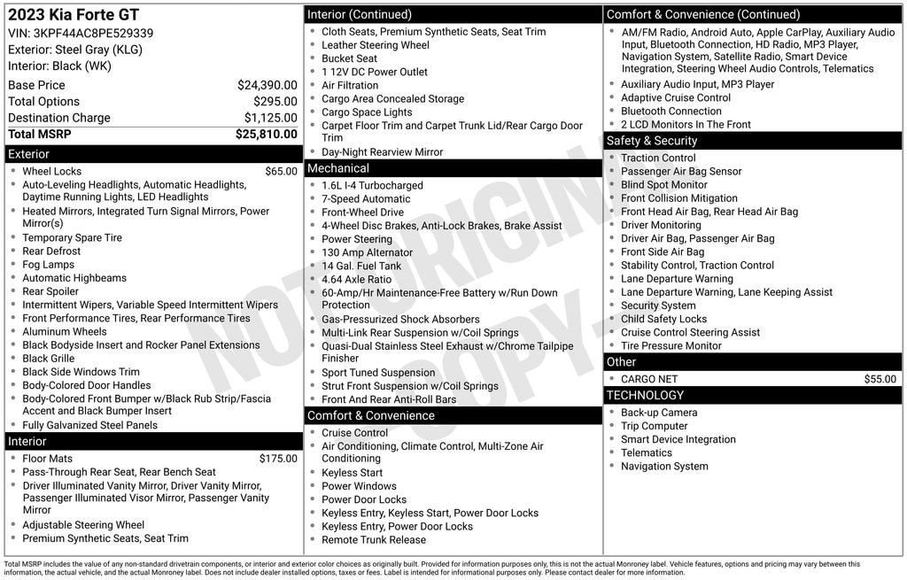 Step inside and you'll be greeted by a wealth of premium features, including a state-of-the-art 10.25 Display Audio system with navigation, a premium harman kardon audio system, and dual-zone automatic climate control. The Forte GT also boasts a host of advanced safety technologies, such as a rearview camera, forward collision warning, and lane keep assist, ensuring you and your passengers can travel with confidence.