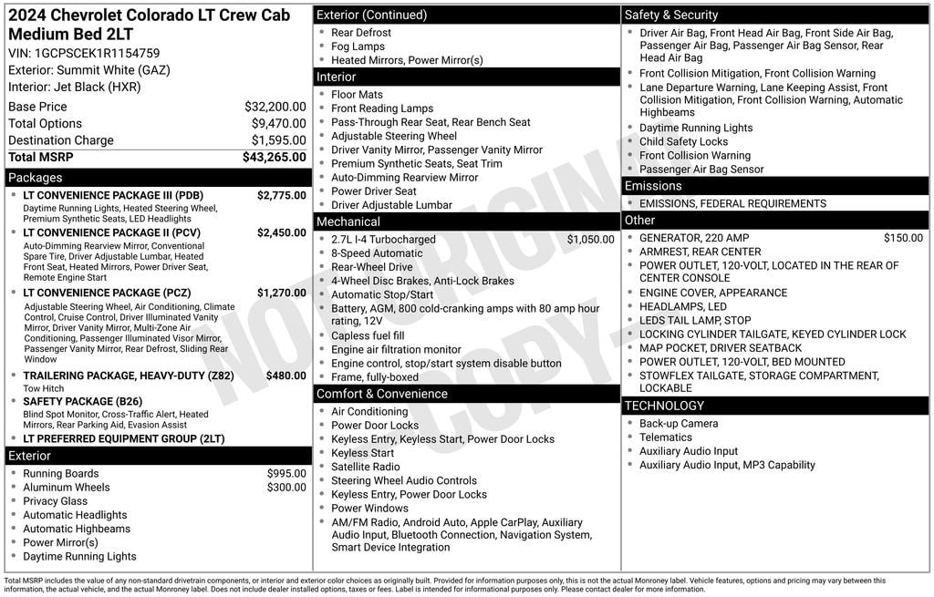 Boyd Chevrolet is proud to offer this Summit White, 2024 Colorado LT. Come see us, we're right down the road in Hendersonville and we are proud to offer this Summit White, 2024 Colorado LT featuring: Colorado LT, 4D Crew Cab, 2.7L I4 Turbocharged DOHC 16V LEV3-ULEV50 237hp, 8-Speed Automatic, RWD, Summit White, Jet Black Cloth, 120-Volt Bed Mounted Power Outlet, 120-Volt Power Outlet, 8-Way Power Driver Seat Adjuster, Automatic Emergency Braking, Chevy Safety Assist, Driver & Front Passenger Illuminated Visors, Driver Seatback Map Pocket, Dual Rear USB Ports (Charge Only), Dual-Zone Automatic Air Conditioning, Electronic Automatic Cruise Control, Evotex Seat Trim, EZ-Lift & Lower Tailgate, Following Distance Indicator, Forward Collision Alert, Front LED Fog Lamps, Front Pedestrian & Bicyclist Braking, Heated Driver & Front Passenger Seats, Heated Power-Adjustable Outside Mirrors, Heated Steering Wheel, Heavy-Duty Trailering Package, Inside Rear-View Auto-Dimming Mirror, Integrated Trailer Brake Controller, IntelliBeam Automatic High Beam On/Off, Lane Keep Assist w/Lane Departure Warning, LED Daytime Running Lamps, LED Headlamps, LEDs Stop Tail Lamp, LT Convenience Package, LT Convenience Package II, LT Convenience Package III, Manual Rear-Sliding Window, Power Driver Lumbar Control Seat Adjuster, Preferred Equipment Group 2LT, Rear Center Armrest, Rear Cross Traffic Braking, Rear Park Assist, Rear-Window Electric Defogger, Remote Vehicle Starter System, Safety Package, StowFlex Tailgate Storage Compartment, Tailgate Keyed Cylinder Lock, Tilt & Telescoping Steering Column, Wireless Charging.