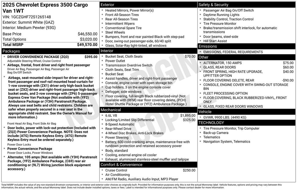 Boyd Chevrolet is proud to offer this Summit White, 2025 Express 3500 Work Van featuring: