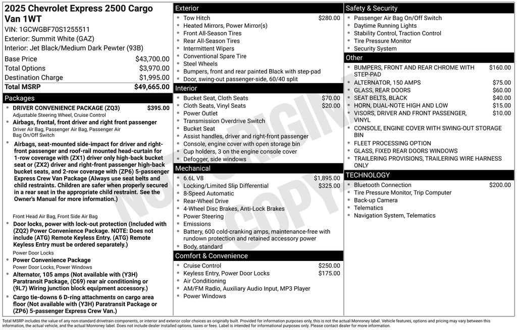 Check out all these great options Driver Convenience Package (Cruise Control and Tilt Steering Wheel), Heavy-Duty Trailering Equipment, Preferred Equipment Group 1WT, 150 Amp Alternator, 16 x 6.5 Steel Wheels, 2 Speakers, 2-Row Coverage Airbags w/ZP6, 3.42 Rear Axle Ratio, 4-Wheel Disc Brakes, ABS brakes, Air Conditioning, AM/FM radio, AM/FM Stereo w/MP3 Player, Bluetooth Phone Connection Kit (LPO), Delay-off headlights, Driver & Front Passenger High-Back Bucket Seats, Driver & Front Passenger Vinyl Visors, Driver door bin, Driver's Seat Mounted Armrest, Dual front impact airbags, Dual front side impact airbags, Electronic Stability Control, Engine Cover Console w/Swing-Out Storage Bin, Exterior Parking Camera Rear, Fixed Rear Door Window Glass, Front & Rear Chrome Bumpers w/Step-Pad, Front anti-roll bar, Front Bucket Seats, Front Reclining High-Back Bucket Seats, Front wheel independent suspension, Full-Length Black Rubberized-Vinyl Floor Covering, Fully automatic headlights, Heated door mirrors, Heavy-Duty Rear Locking Differential, High & Low Dual-Note Horn, Low tire pressure warning, Occupant sensing airbag, Overhead airbag, Passenger cancellable airbag, Passenger door bin, Passenger seat mounted armrest, Power door mirrors, Power steering, Power windows, Rear Door Glass, Reclining Front Bucket Seats w/Inboard Armrests, Remote Keyless Entry, Single-Zone Manual Air Conditioning, Tachometer, Theft Alarm Notification, Traction control, Trip computer, Variably intermittent wipers, Vinyl Seat Trim, and Voltmeter Located at 1875 Spartanburg Hwy, Hendersonville, NC, Boyd Chevrolet has proudly served Western North Carolina and Upstate South Carolina since 1932. Weâre committed to our communities including Asheville, Fletcher, Hendersonville, Hickory, Spartanburg, Gastonia, Boone, Charlotte, Johnson City, and Knoxville, as well as the broader regions of North Carolina, South Carolina, Virginia, and Tennessee.