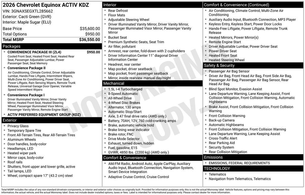 - Warranty: <<< Preliminary 2026 Warranty >>>