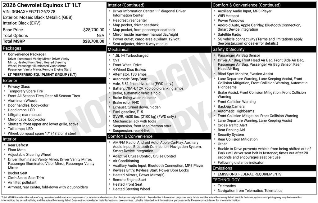 - Warranty: <<< Preliminary 2026 Warranty >>>