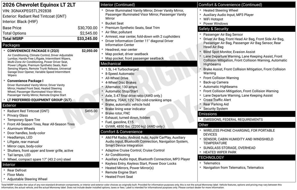 - Warranty: <<< Preliminary 2026 Warranty >>>
