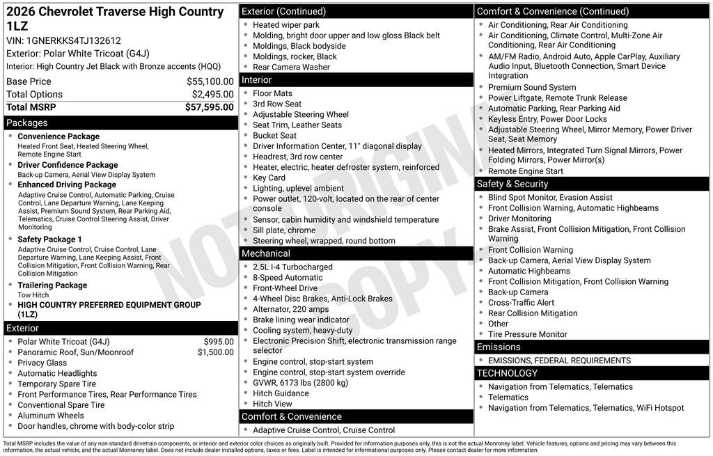 - Warranty: <<< Preliminary 2026 Warranty >>>