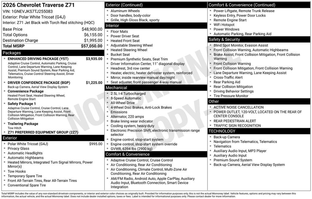 New 2026 ChevroletTraverse Z71