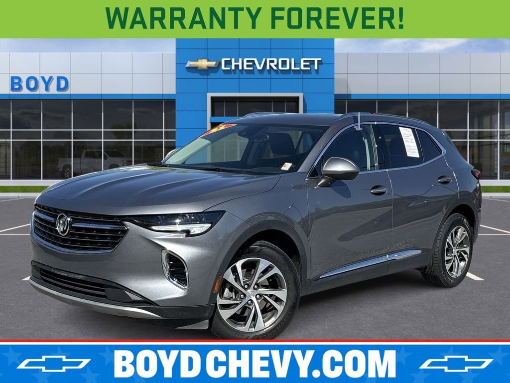 Boyd Chevrolet is proud to offer this Satin Steel Gray Metallic, 2021 Envision Essence featuring: Preferred Equipment Group 1SL, 18 Machined Aluminum Wheels, 3.47 Final Drive Axle Ratio, 4-Wheel Disc Brakes, 7 Speakers, 7-Speaker Audio System Feature w/Amplifier, 8-Way Power Driver Seat Adjuster, ABS brakes, Air Conditioning, Alloy wheels, AM/FM radio: SiriusXM, Apple CarPlay/Android Auto, Auto High-beam Headlights, Auto-dimming door mirrors, Auto-dimming Rear-View mirror, Automatic temperature control, Brake assist, Bumpers: body-color, Compass, Delay-off headlights, Driver 4-Way Power Lumbar Seat Adjuster, Driver door bin, Driver vanity mirror, Dual front impact airbags, Dual front side impact airbags, Electronic Stability Control, Emergency communication system: OnStar and Buick connected services capable, Four wheel independent suspension, Front anti-roll bar, Front Bucket Seats, Front Center Armrest, Front dual zone A/C, Front Passenger 4-Way Power Lumbar Seat Adjuster, Front Passenger 8-Way Power Seat Adjuster, Front reading lights, Fully automatic headlights, Heated door mirrors, Heated Driver & Front Passenger Seats, Heated front seats, Heated steering wheel, Illuminated entry, Knee airbag, Leather Shift Knob, Low tire pressure warning, Memory seat, Occupant sensing airbag, Outside temperature display, Overhead airbag, Overhead console, Panic alarm, Passenger door bin, Passenger vanity mirror, Perforated Leather-Appointed Seat Trim, Power door mirrors, Power driver seat, Power Liftgate, Power passenger seat, Power steering, Power windows, Radio data system, Radio: Buick Infotainment System AM/FM Stereo, Rear anti-roll bar, Rear reading lights, Rear seat center armrest, Rear window defroster, Rear window wiper, Remote keyless entry, Roof rack: rails only, Security system, SiriusXM Radio, Speed control, Speed-sensing steering, Split folding rear seat, Spoiler, Steering wheel mounted audio controls, Tachometer, Telescoping steering wheel, Tilt steering wheel, Traction control, Trip computer, USB Charging-Only Ports, USB Ports, Variably intermittent wipers, and Wireless Apple CarPlay/Wireless Android Auto.