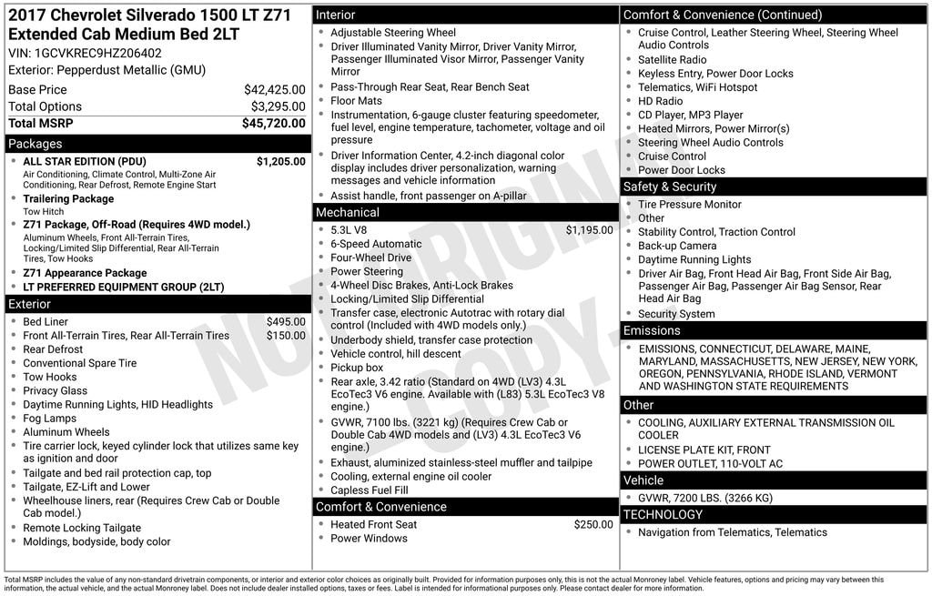Check out all these great options All Star Edition (110-Volt AC Power Outlet, Dual-Zone Automatic Climate Control, Electric Rear-Window Defogger, Remote Vehicle Starter System, and Theft Deterrent System (Unauthorized Entry)), Trailering Package, 6-Speed Automatic Electronic with Overdrive, 4WD, Cocoa/Dune Cloth, 10-Way Power Driver's Seat Adjuster, 150 Amp Alternator, 3.42 Rear Axle Ratio, 4-Wheel Disc Brakes, 4.2 Diagonal Color Display Driver Info Center, 40/20/40 Front Split Bench Seat, 6 Speaker Audio System, 6 Speakers, ABS brakes, Air Conditioning, Alloy wheels, AM/FM radio: SiriusXM, Auxiliary External Transmission Oil Cooler, Bluetooth® For Phone, Body Color Bodyside Moldings, Body-Color Door Handles, Body-Color Mirror Caps, Body-Color Power Adjustable Heated Outside Mirrors, Bodyside moldings, Brake assist, CD player, Cloth Seat Trim, Color-Keyed Carpeting w/Rubberized Vinyl Floor Mats, Compass, Deep-Tinted Glass, Delay-off headlights, Driver & Front Passenger Illuminated Vanity Mirrors, Driver door bin, Driver vanity mirror, Dual front impact airbags, Dual front side impact airbags, Electronic Stability Control, Emergency communication system: OnStar Guidance, Exterior Parking Camera Rear, EZ Lift & Lower Tailgate, Front anti-roll bar, Front Center Armrest w/Storage, Front Chrome Bumper, Front License Plate Kit, Front reading lights, Front wheel independent suspension, Fully automatic headlights, HD Radio, Heated door mirrors, Heated Driver & Front Passenger Seats, Heavy-Duty Rear Locking Differential, High-Intensity Discharge Headlights, Illuminated entry, Leather Wrapped Steering Wheel w/Cruise Controls, Low tire pressure warning, Manual Tilt Wheel Steering Column, Manual Tilt/Telescoping Steering Column, Occupant sensing airbag, OnStar 3 Months Guidance Plan, OnStar w/4G LTE, Outside temperature display, Overhead airbag, Overhead console, Panic alarm, Passenger door bin, Passenger vanity mirror, Power door mirrors, Power steering, Power windows, Power Windows w/Driver Express Up, Premium audio system: Chevrolet MyLink, Radio data system, Radio: AM/FM 8 Diagonal Color Touch Screen, Rear 60/40 Folding Bench Seat (Folds Up), Rear Chrome Bumper, Rear reading lights, Rear step bumper, Rear Vision Camera, Rear Wheelhouse Liners, Remote Keyless Entry, Remote keyless entry, Remote Locking Tailgate, Single Slot CD/MP3 Player, SiriusXM Satellite Radio, Speed control, Speed-sensing steering, Split folding rear seat, Spray-On Pickup Box Bed Liner, Steering Wheel Audio Controls, Steering wheel mounted audio controls, Tachometer, Thin Profile LED Fog Lamps, Tilt steering wheel, Traction control, Trip computer, Variably intermittent wipers, and Voltmeter Located at 1875 Spartanburg Hwy, Hendersonville, NC, Boyd Chevrolet has proudly served Western North Carolina and Upstate South Carolina since 1932. Weâre committed to our communities including Asheville, Fletcher, Hendersonville, Hickory, Spartanburg, Gastonia, Boone, Charlotte, Johnson City, and Knoxville, as well as the broader regions of North Carolina, South Carolina, Virginia, and Tennessee.