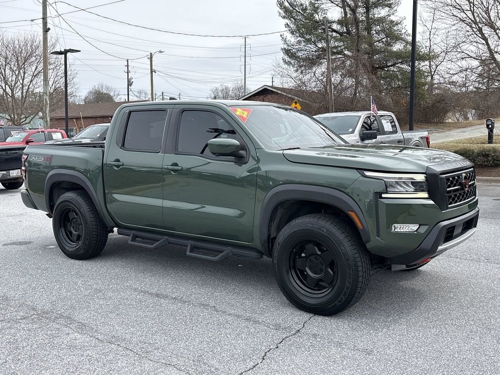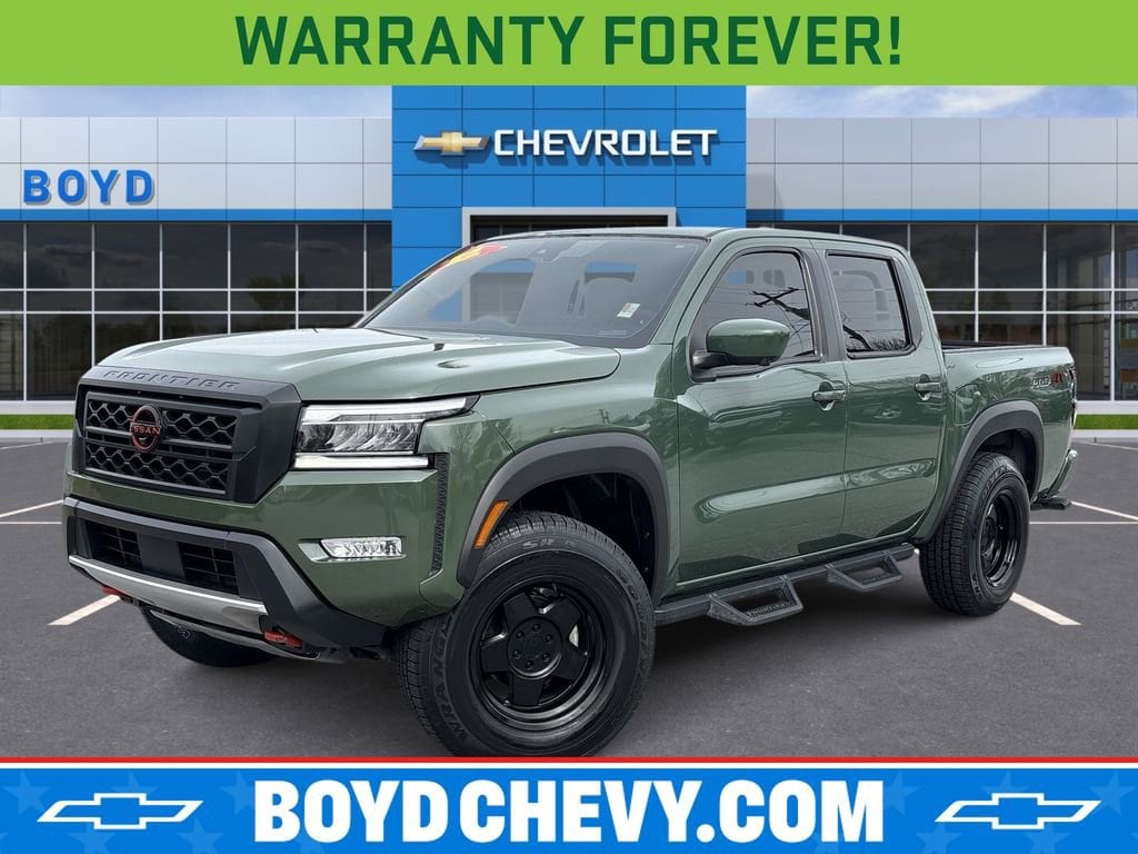 Boyd Chevrolet is proud to offer this Tactical Green Metallic, 2022 Frontier PRO-4X featuring: Bed Access Package, Off-Road Protection Package, PRO-4X Comfort & Convenience Package (Bed Under-Rail Lighting, Heated Steering Wheel, Intelligent Around View Monitor (I-AVM), and Wireless Charging For Personal Devices), 17 Alloy Wheels, 3.692 Axle Ratio, 4-Wheel Disc Brakes, 6 Speakers, ABS brakes, Air Conditioning, Alloy wheels, AM/FM radio: SiriusXM, Anti-whiplash front head restraints, Auto High-beam Headlights, Automatic temperature control, Brake assist, Bumpers: body-color, Delay-off headlights, Driver door bin, Driver vanity mirror, Dual front impact airbags, Dual front side impact airbags, Electronic Stability Control, Emergency communication system: NissanConnect Services, Front anti-roll bar, Front Bucket Seats, Front Center Armrest, Front dual zone A/C, Front fog lights, Front reading lights, Front wheel independent suspension, Fully automatic headlights, Illuminated entry, Knee airbag, Leather Shift Knob, Low tire pressure warning, Navigation system: Nissan Navigation with Voice Recognition, Nissan Tailgate Audio by Kicker w/Utili-Track Brkt, Occupant sensing airbag, Off-Road Style Step Rails, Overhead airbag, Overhead console, Panic alarm, Passenger door bin, Passenger vanity mirror, Power door mirrors, Power driver seat, Power steering, Power windows, PRO Embroidered Premium Cloth Seat Trim, PRO-4X Mud Flaps, Radio data system, Radio: SXM/AM/FM/AUX/USB Audio System w/6 Speakers, Rear anti-roll bar, Rear seat center armrest, Rear step bumper, Remote keyless entry, Security system, Speed control, Speed-sensing steering, Split folding rear seat, Steering wheel mounted audio controls, Tachometer, Tilt steering wheel, Traction control, Trip computer, Variably intermittent wipers, and Voltmeter.Odometer is 2501 miles below market average!17/22 City/Highway MPGCheck out all these great options Bed Access Package, Off-Road Protection Package, PRO-4X Comfort & Convenience Package (Bed Under-Rail Lighting, Heated Steering Wheel, Intelligent Around View Monitor (I-AVM), and Wireless Charging For Personal Devices), 17 Alloy Wheels, 3.692 Axle Ratio, 4-Wheel Disc Brakes, 6 Speakers, ABS brakes, Air Conditioning, Alloy wheels, AM/FM radio: SiriusXM, Anti-whiplash front head restraints, Auto High-beam Headlights, Automatic temperature control, Brake assist, Bumpers: body-color, Delay-off headlights, Driver door bin, Driver vanity mirror, Dual front impact airbags, Dual front side impact airbags, Electronic Stability Control, Emergency communication system: NissanConnect Services, Front anti-roll bar, Front Bucket Seats, Front Center Armrest, Front dual zone A/C, Front fog lights, Front reading lights, Front wheel independent suspension, Fully automatic headlights, Illuminated entry, Knee airbag, Leather Shift Knob, Low tire pressure warning, Navigation system: Nissan Navigation with Voice Recognition, Nissan Tailgate Audio by Kicker w/Utili-Track Brkt, Occupant sensing airbag, Off-Road Style Step Rails, Overhead airbag, Overhead console, Panic alarm, Passenger door bin, Passenger vanity mirror, Power door mirrors, Power driver seat, Power steering, Power windows, PRO Embroidered Premium Cloth Seat Trim, PRO-4X Mud Flaps, Radio data system, Radio: SXM/AM/FM/AUX/USB Audio System w/6 Speakers, Rear anti-roll bar, Rear seat center armrest, Rear step bumper, Remote keyless entry, Security system, Speed control, Speed-sensing steering, Split folding rear seat, Steering wheel mounted audio controls, Tachometer, Tilt steering wheel, Traction control, Trip computer, Variably intermittent wipers, and Voltmeter Located at 1875 Spartanburg Hwy, Hendersonville, NC, Boyd Chevrolet has proudly served Western North Carolina and Upstate South Carolina since 1932. Weâre committed to our communities including Asheville, Fletcher, Hendersonville, Hickory, Spartanburg, Gastonia, Boone, Charlotte, Johnson City, and Knoxville,