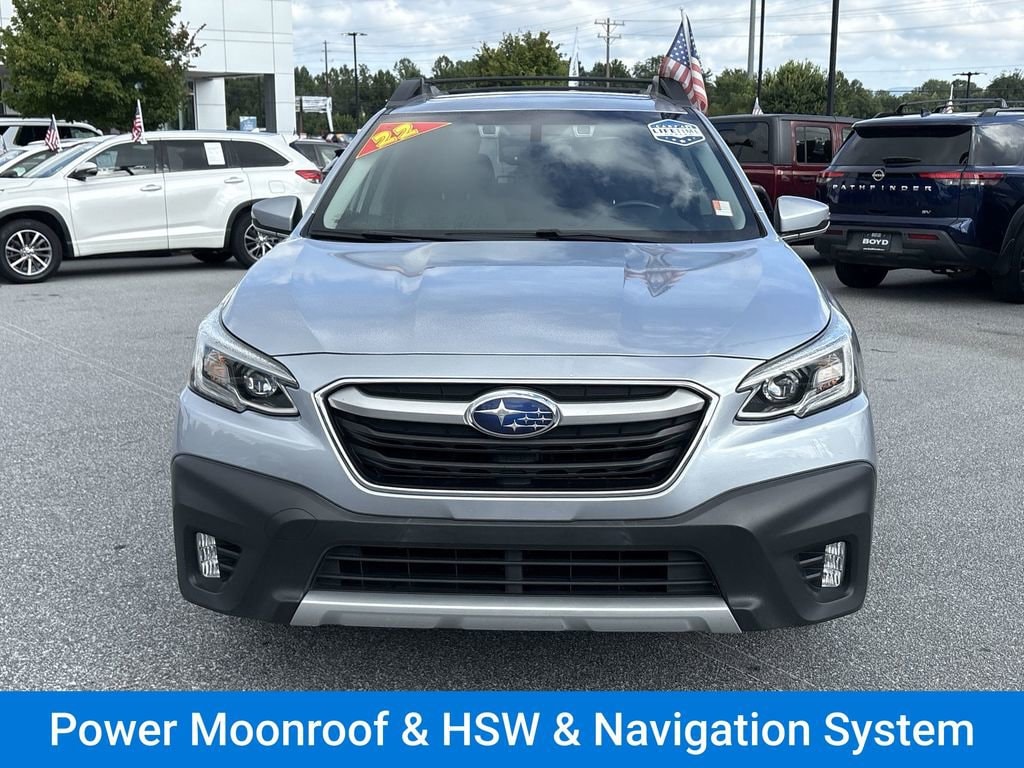 Check out all these great options Power Moonroof & HSW & Navigation System (DriverFocus (Driver Monitoring System), Heated Steering Wheel, Power Moonroof, and Radio: Subaru STARLINK 11.6 Multimedia Nav System), Outback Limited, 12 Speakers, 3.90 Axle Ratio, 4-Wheel Disc Brakes, ABS brakes, Air Conditioning, All-Weather Floor Liners, Alloy wheels, AM/FM radio: SiriusXM, Auto High-beam Headlights, Auto-dimming Rear-View mirror, Automatic temperature control, Brake assist, Bumpers: body-color, Compass, Driver door bin, Driver vanity mirror, Dual front impact airbags, Dual front side impact airbags, Electronic Stability Control, Emergency communication system: STARLINK Safety and Security (Subscription Required), Exterior Parking Camera Rear, Four wheel independent suspension, Front anti-roll bar, Front Bucket Seats, Front Center Armrest w/Storage, Front dual zone A/C, Front fog lights, Front reading lights, Fully automatic headlights, Garage door transmitter: HomeLink, harman/kardon® Speakers, Heated door mirrors, Heated Front Bucket Seats, Heated front seats, Heated rear seats, Illuminated entry, Knee airbag, Leather steering wheel, Low tire pressure warning, Memory seat, Occupant sensing airbag, Outside temperature display, Overhead airbag, Overhead console, Panic alarm, Passenger door bin, Passenger vanity mirror, Perforated Leather-Trimmed Upholstery, Power door mirrors, Power driver seat, Power Liftgate, Power passenger seat, Power steering, Power windows, Radio: Subaru STARLINK 11.6 Multimedia Plus Sys, Rear anti-roll bar, Rear Bumper Cover, Rear Seat Back Protector, Rear seat center armrest, Rear window defroster, Rear window wiper, Remote keyless entry, Roof rack, Security system, Speed control, Speed-sensing steering, Split folding rear seat, Spoiler, STARLINK/Apple CarPlay/Android Auto, Steering wheel mounted audio controls, Steering Wheel Paddle Shift Control Switches, Tachometer, Telescoping steering wheel, Tilt steering wheel, Traction control, Trip computer, Turn signal indicator mirrors, Variably intermittent wipers, and Wheels: 18 x 7J Black Aluminum Alloy Located at 1875 Spartanburg Hwy, Hendersonville, NC, Boyd Chevrolet has proudly served Western North Carolina and Upstate South Carolina since 1932. Weâre committed to our communities including Asheville, Fletcher, Hendersonville, Hickory, Spartanburg, Gastonia, Boone, Charlotte, Johnson City, and Knoxville, as well as the broader regions of North Carolina, South Carolina, Virginia, and Tennessee.