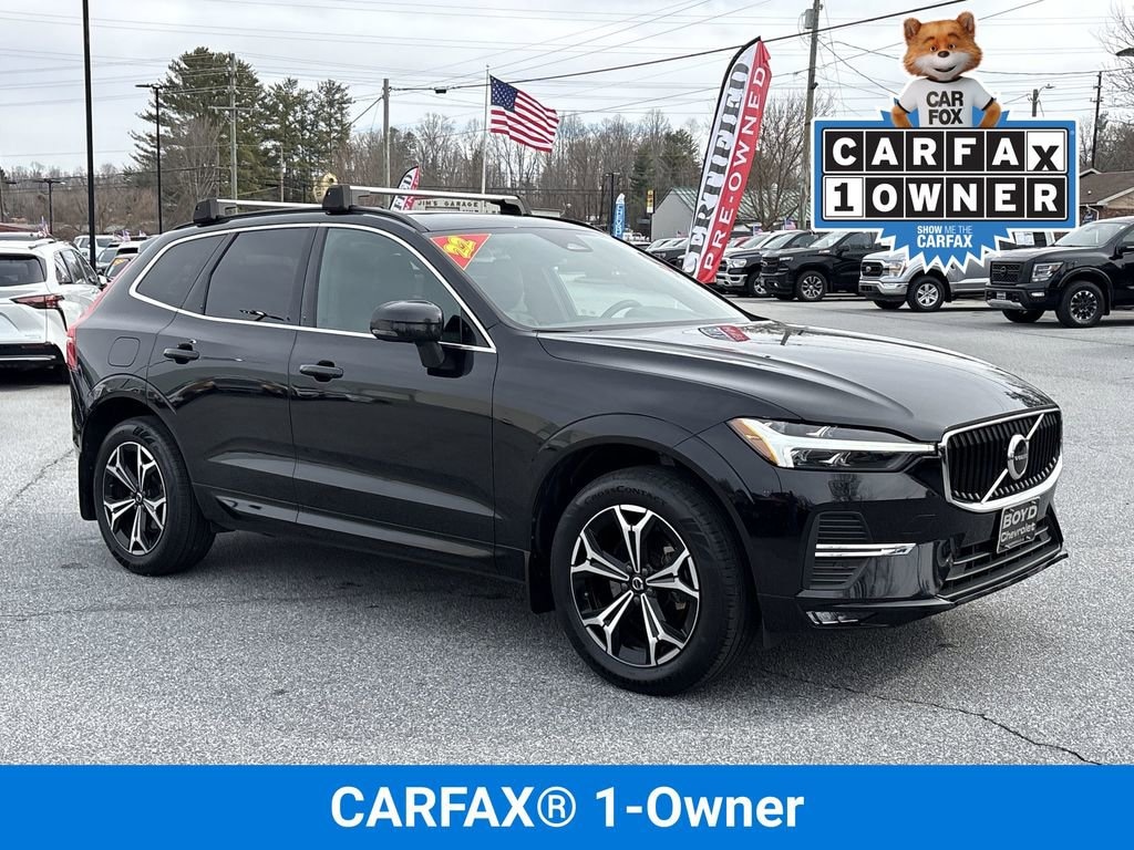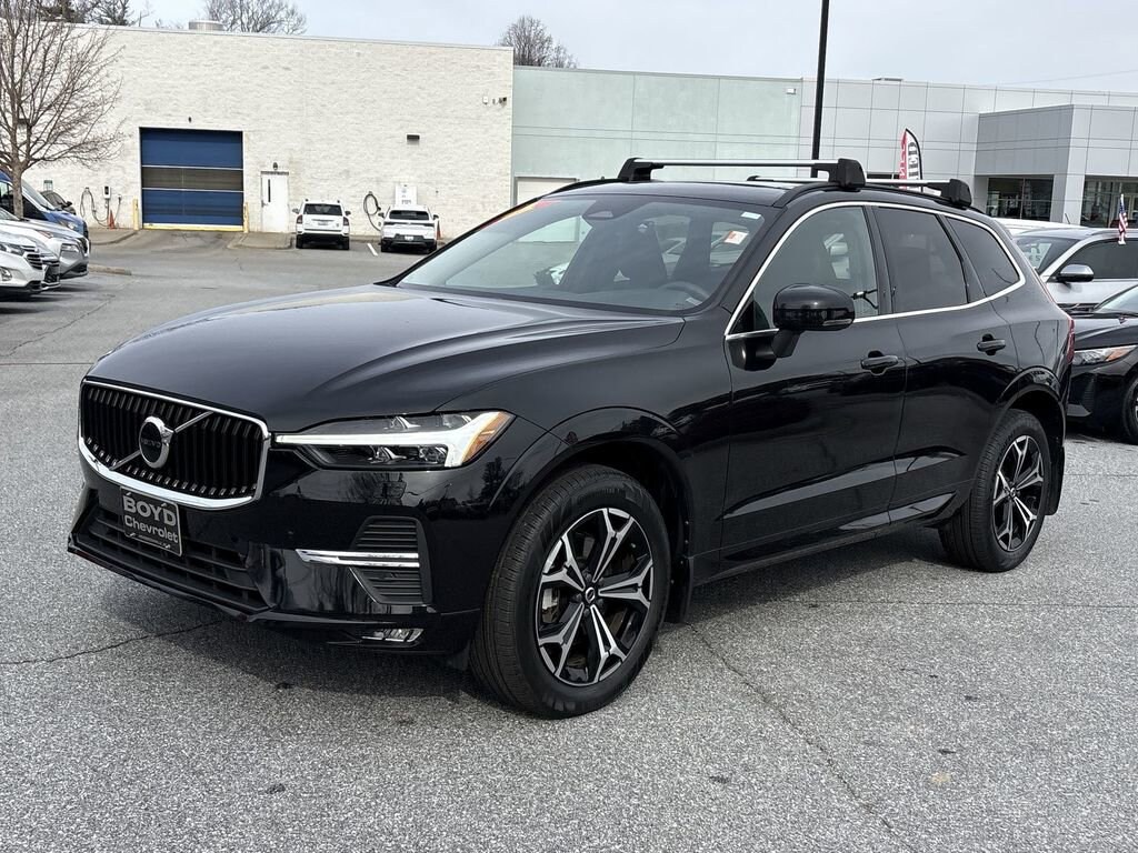 Boyd Chevrolet is proud to offer this Onyx Black Metallic, 2022 XC60 B5 Momentum featuring: Climate Package (Headlight High Pressure Cleaning, Heated Rear Seats, and Heated Steering Wheel), Protection Package Premier (Bumper Cover, Cargo Tray, License Plate Frame, Rubber Floor Mats, and Wheel Locks), 10 Speakers, 4-Wheel Disc Brakes, ABS brakes, Air Conditioning, Alloy wheels, Anti-whiplash front head restraints, Auto High-beam Headlights, Auto-dimming door mirrors, Auto-dimming Rear-View mirror, Automatic temperature control, Blonde City Weave Textile Upholstery, Brake assist, Bumpers: body-color, Delay-off headlights, Driver door bin, Driver vanity mirror, Dual front impact airbags, Dual front side impact airbags, Electronic Stability Control, Emergency communication system: Volvo Cars App w/4 Year Subscription, Exterior Parking Camera Rear, Four wheel independent suspension, Front anti-roll bar, Front Bucket Seats, Front Center Armrest, Front dual zone A/C, Front fog lights, Front reading lights, Fully automatic headlights, Heated door mirrors, Heated Front Bucket Seats, Heated front seats, Illuminated entry, Knee airbag, Leather Shift Knob, Load Bars, Low tire pressure warning, Luggage Cover, Memory seat, Mud Flaps, Occupant sensing airbag, Outside temperature display, Overhead airbag, Panic alarm, Passenger door bin, Passenger vanity mirror, Power door mirrors, Power driver seat, Power moonroof, Power Operated Tailgate, Power passenger seat, Power steering, Power windows, Radio data system, Radio: High Performance Audio System, Rain sensing wipers, Rear anti-roll bar, Rear fog lights, Rear reading lights, Rear seat center armrest, Rear window defroster, Rear window wiper, Remote keyless entry, Security system, Speed control, Split folding rear seat, Spoiler, Steering wheel mounted audio controls, Tachometer, Telescoping steering wheel, Tilt steering wheel, Traction control, Trip computer, Turn signal indicator mirrors, Variably intermittent wipers, Wheels: 18 5-Spoke Silver Alloy, and Wheels: 19 5-Y Spoke Black Diamond Cut Alloy.